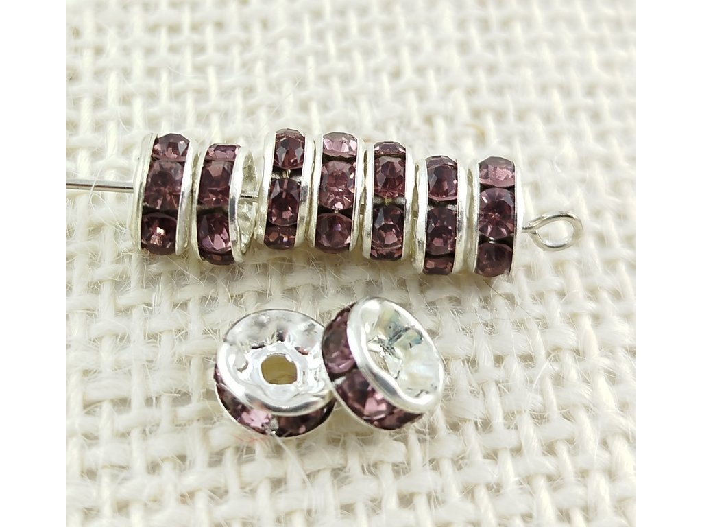 Štrasová rondelka - stříbrná - světle fialové kamínky - 8mm