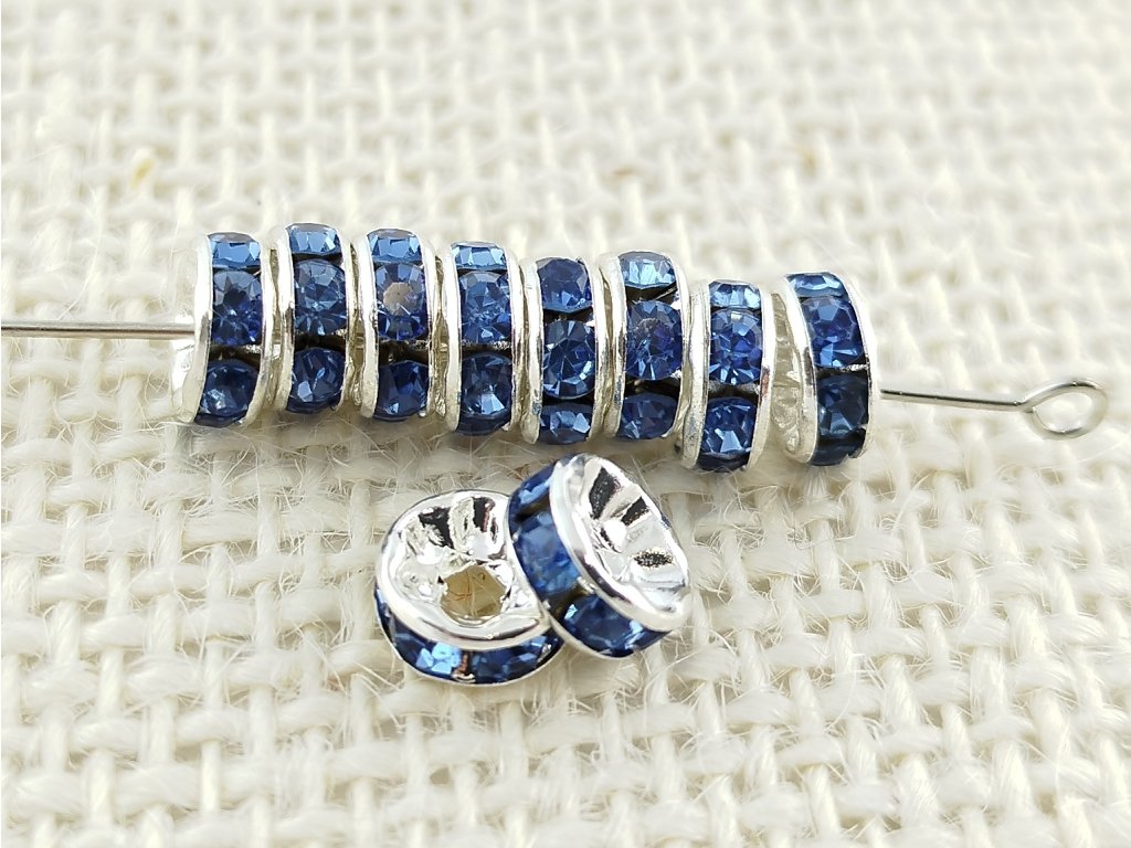 Štrasová rondelka - stříbrná - světle modré kamínky - 8mm