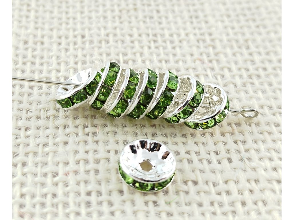 Štrasová rondelka - stříbrná - světlě zelené kamínky - 10mm