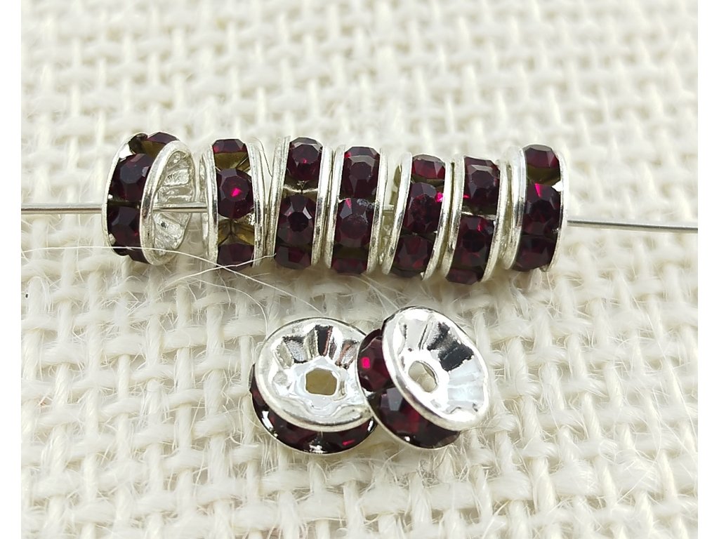 Štrasová rondelka - stříbrná - tmavě červené kamínky - 8mm