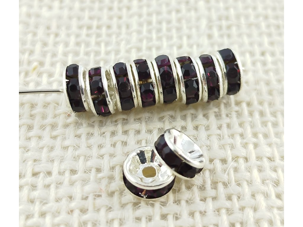 Štrasová rondelka - stříbrná - tmavě fialové kamínky - 8mm