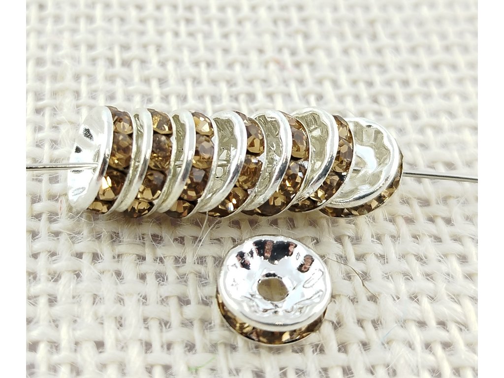 Štrasová rondelka - stříbrná - tmavě žluté kamínky - 10mm