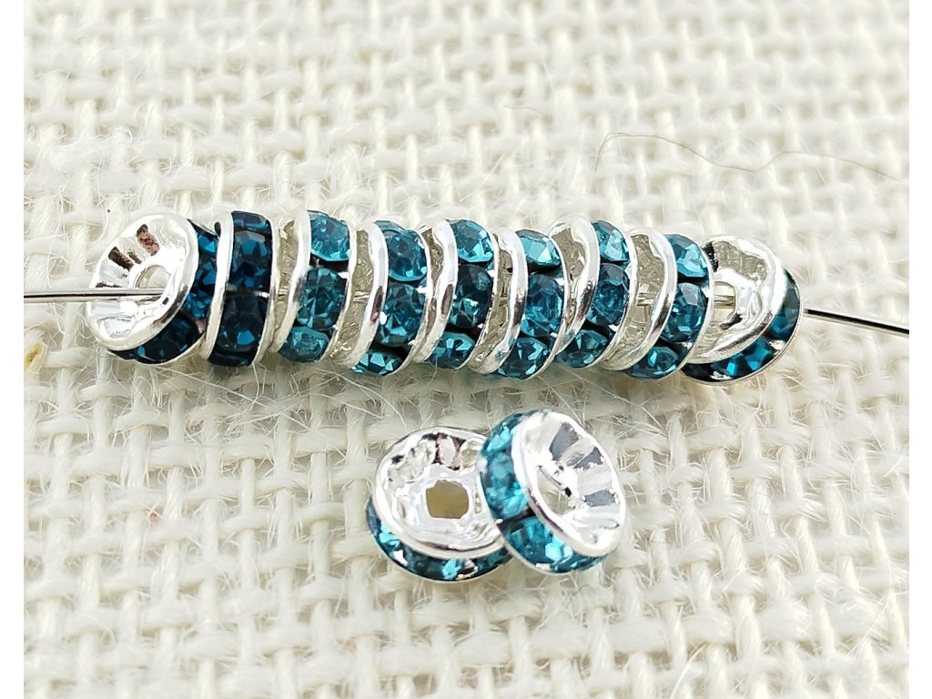 Štrasová rondelka - stříbrná - tyrkysové kamínky - 8mm
