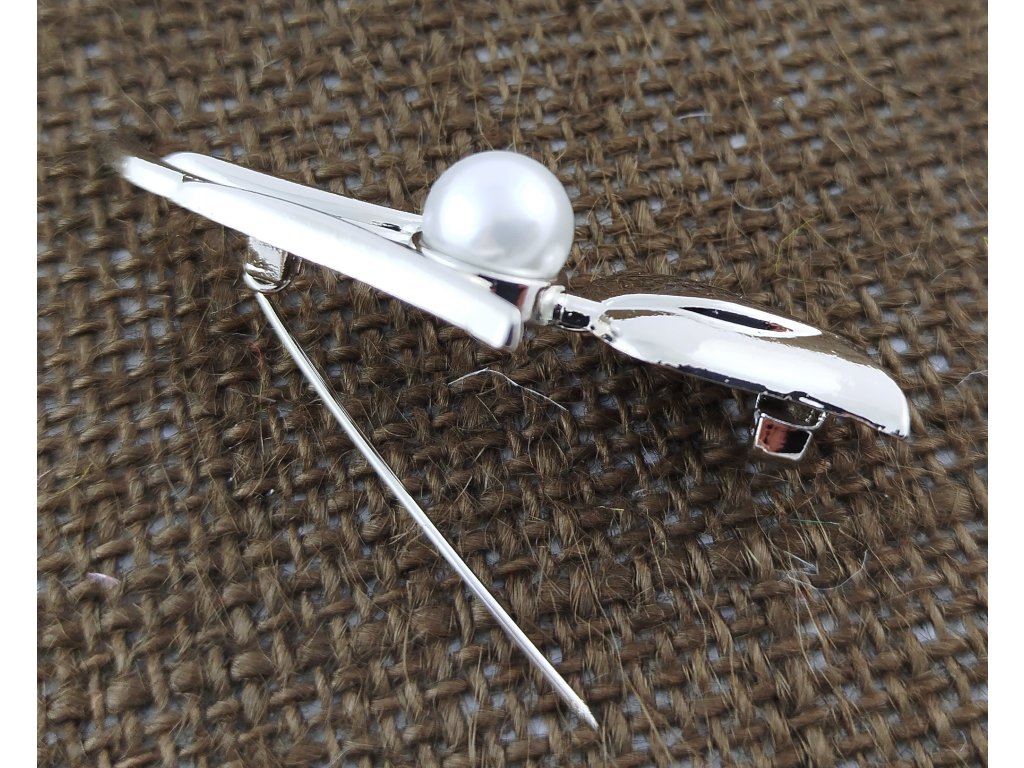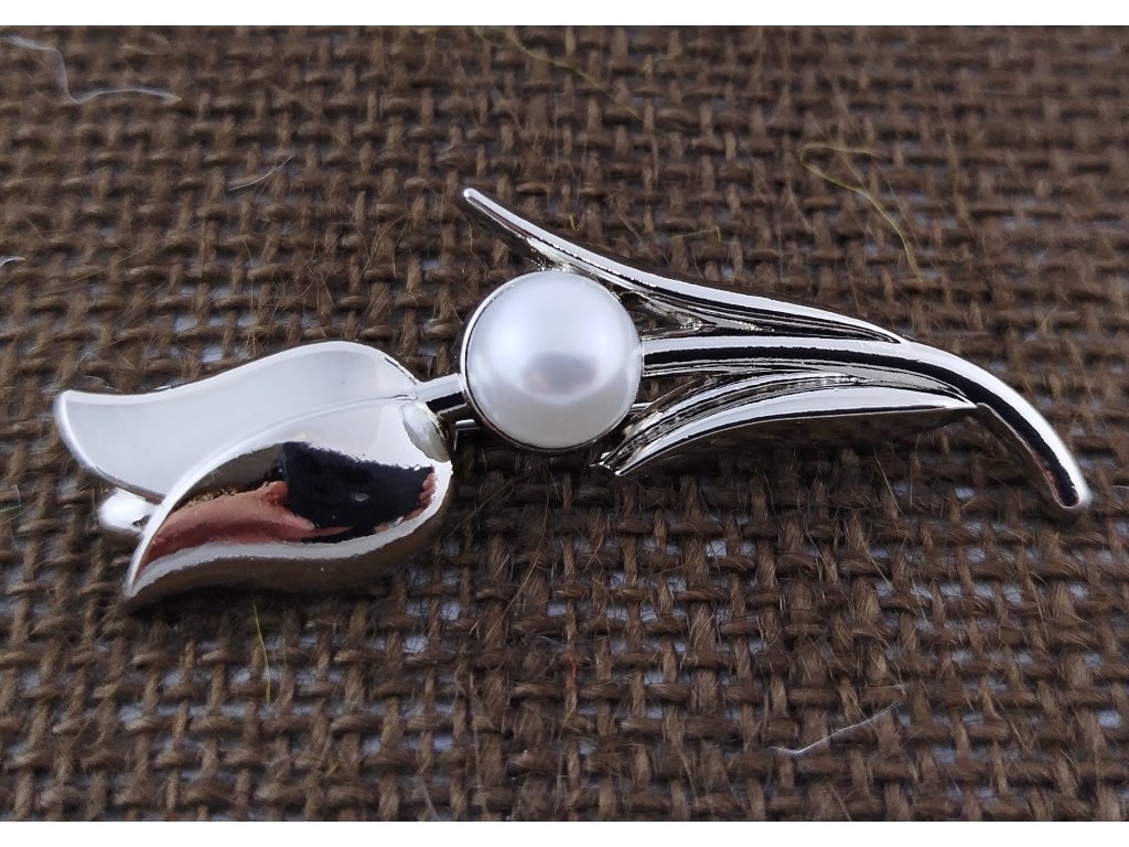 Krásná brož s perlou ve stříbrné barvě ve tvaru tulipánu