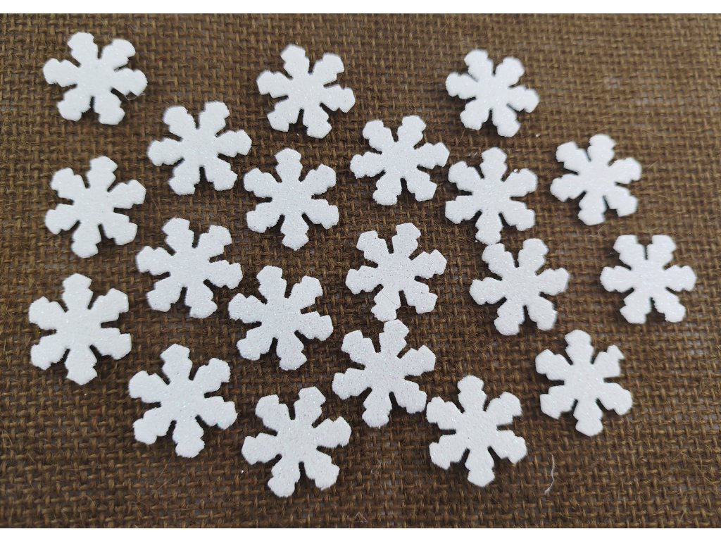 Vánoční dekorace - vločky z pěnovky - bílé třpytivé - 20 kusů