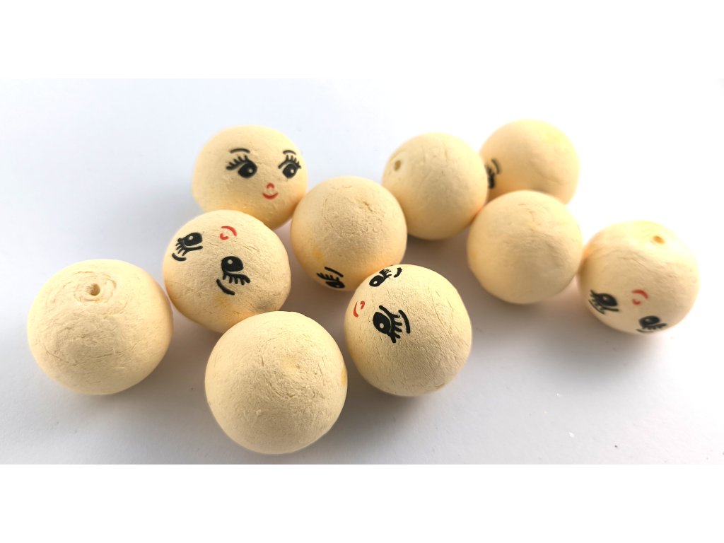 Vatová kulička v tělové barvě s obličejem o průměru 3 cm.