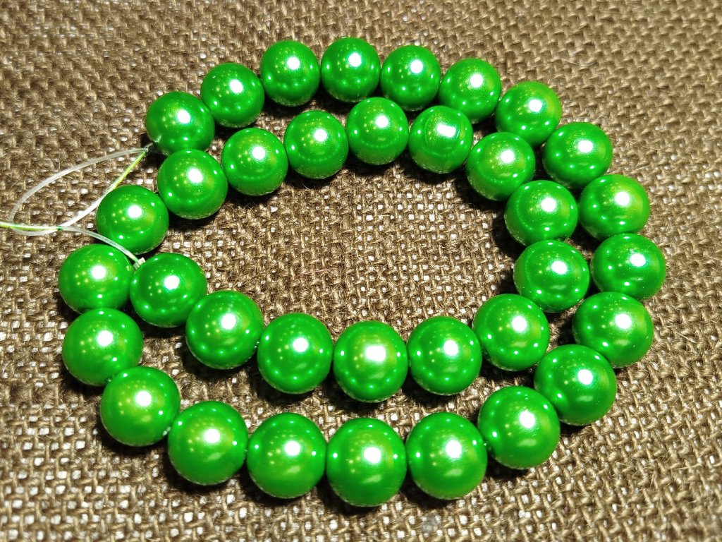 Voskové perly o průměru 10mm ve tmavě zelené barvě.