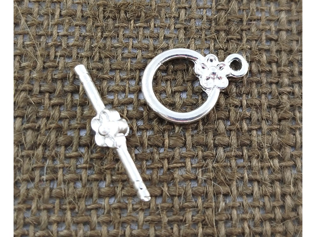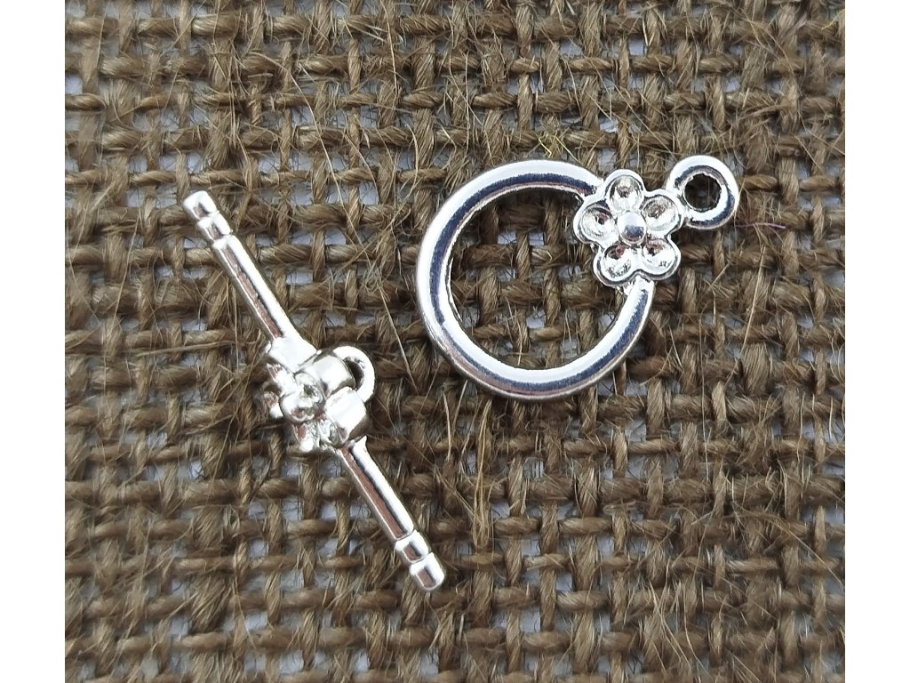 Zapínání americké - s kytičkou, stříbro, průměr 14mm