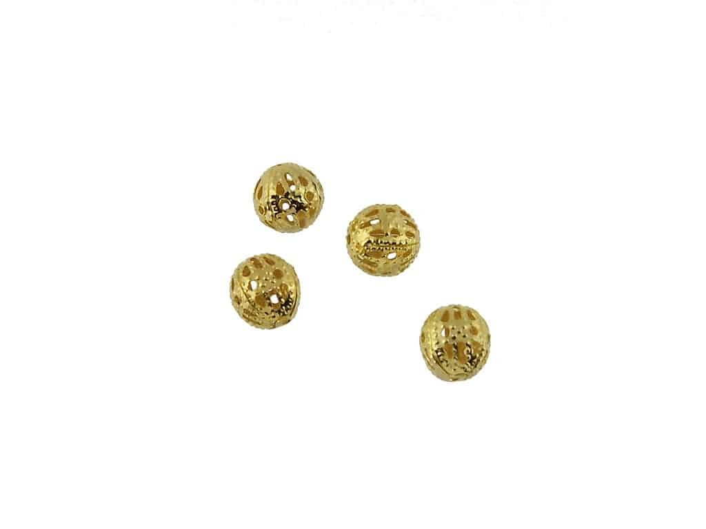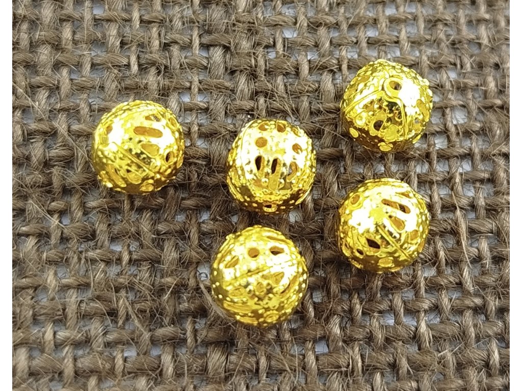 Kovový perforovaný korálek, galvanizace zlato, 8mm